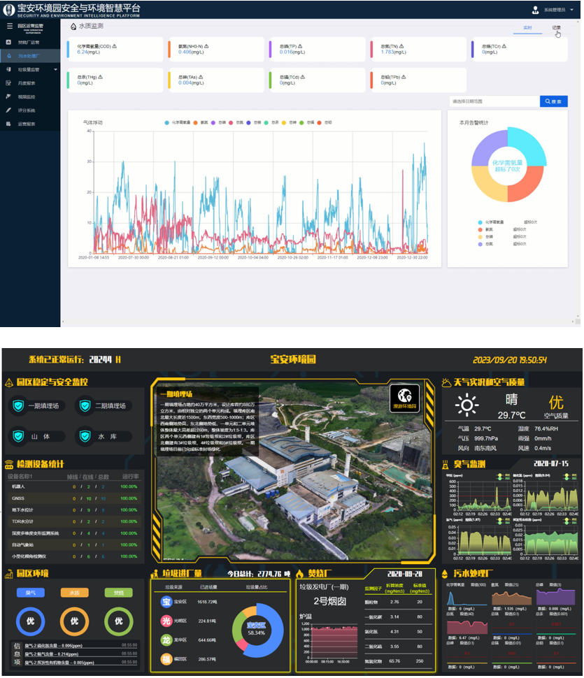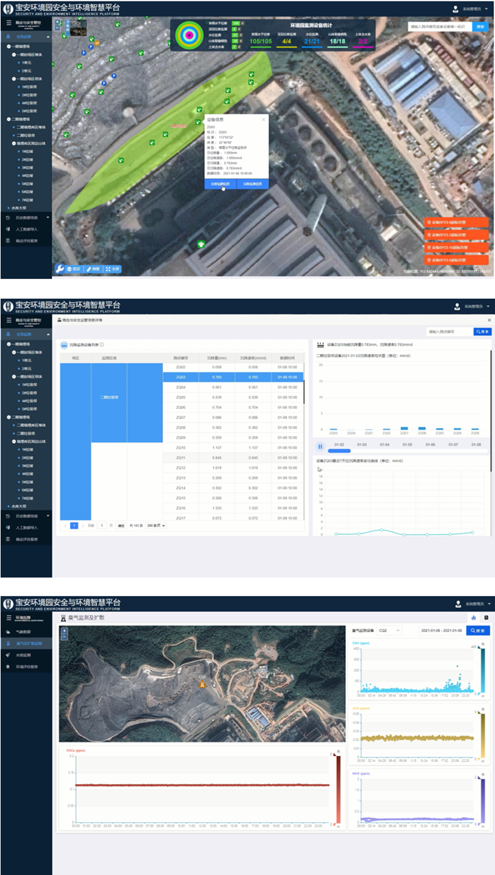 系統(tǒng)實現(xiàn)對園區(qū)穩(wěn)定安全與環(huán)境安全的自動化監(jiān)控;通過填埋場堆體內(nèi)滯水位和主水位數(shù)據(jù)的在線監(jiān)控,基于穩(wěn)定分析提出安全預(yù)警等級,掌握填埋堆體的實時穩(wěn)定安全性;通過填埋場堆體、堤壩和填埋場周邊山體沉降、表面位移和深層位移的在線監(jiān)測,掌握園區(qū)穩(wěn)定安全動態(tài);通過園區(qū)臭氣濃度的在線監(jiān)測,掌握園區(qū)實時環(huán)境安全情況,并及時預(yù)警?;谠诰€監(jiān)測系統(tǒng),提高園區(qū)運營管控能力。。