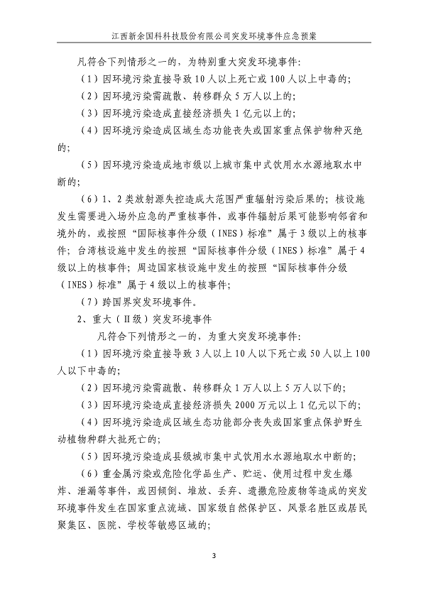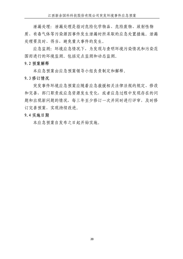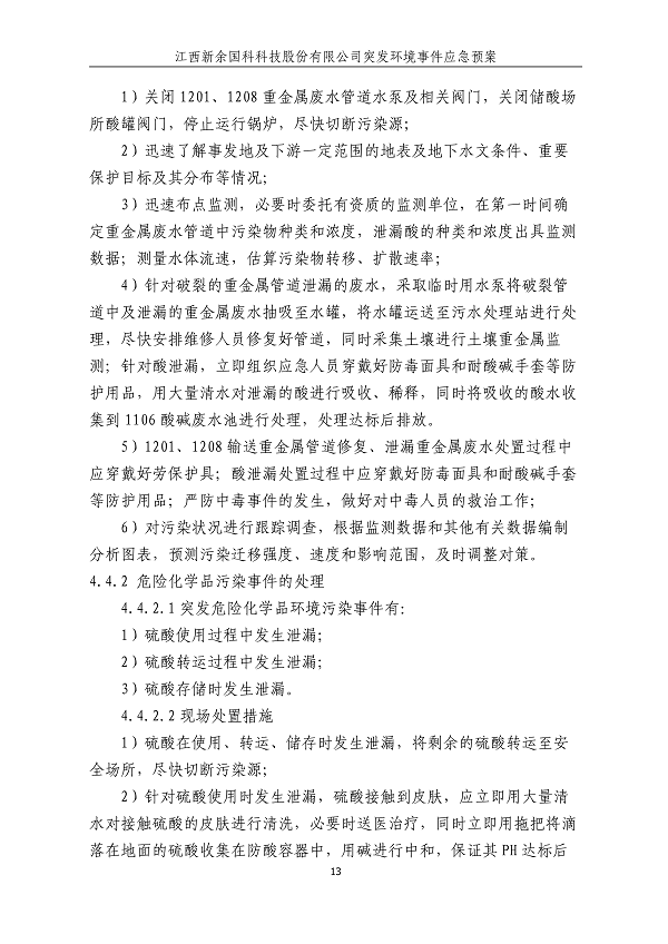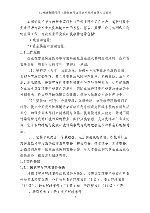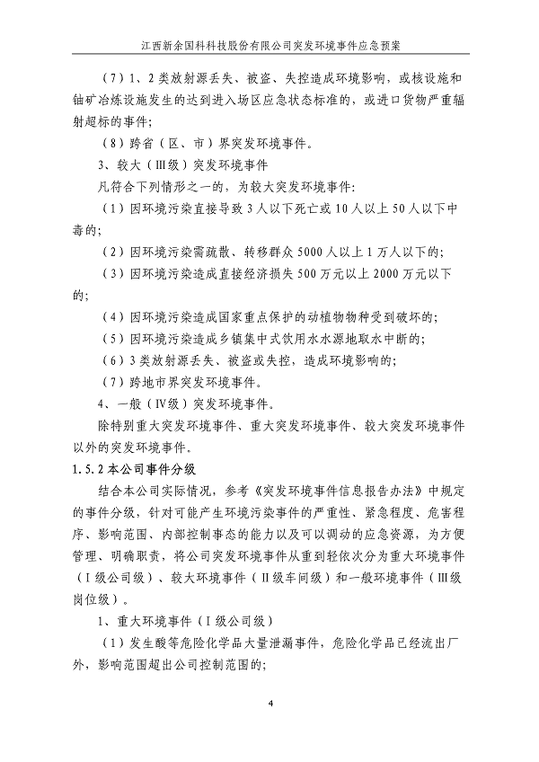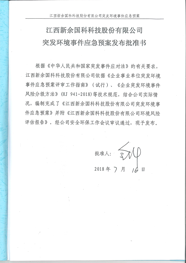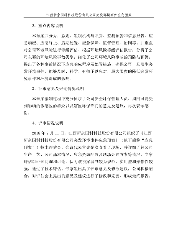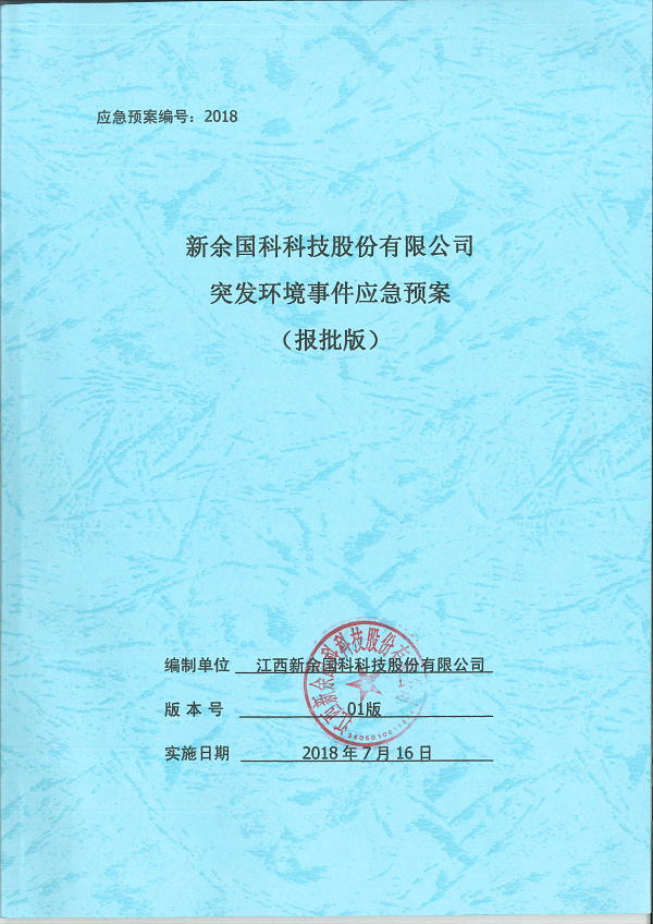 江西新余國科科技股份有限公司突發(fā)環(huán)境事件應急預案