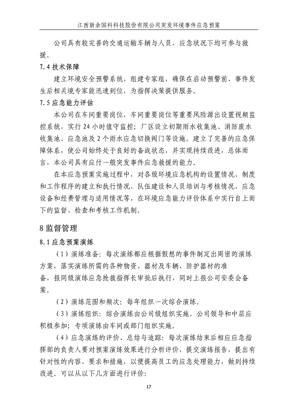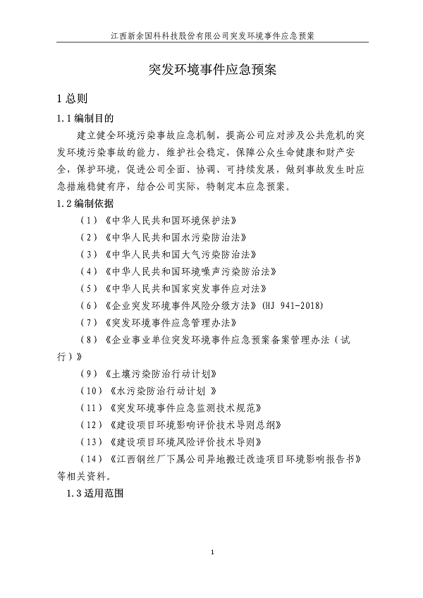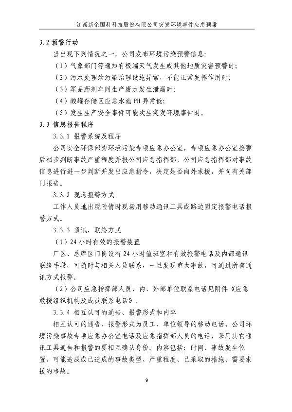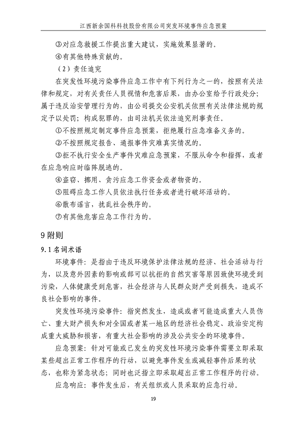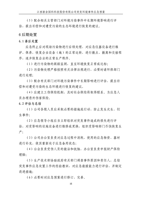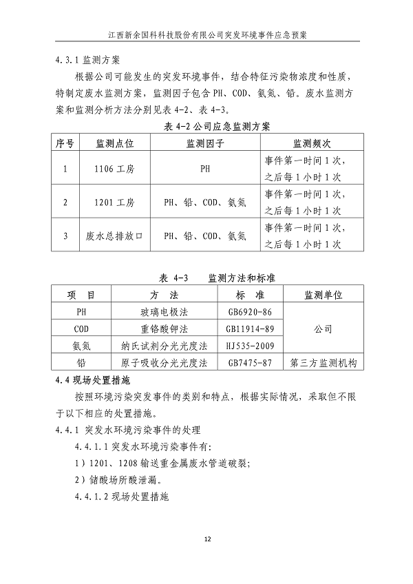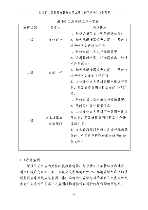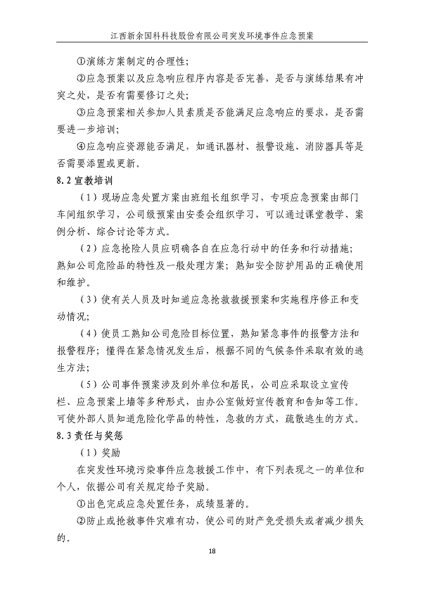 江西新余國科科技股份有限公司突發(fā)環(huán)境事件應急預案