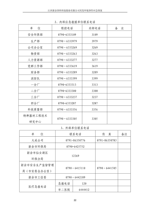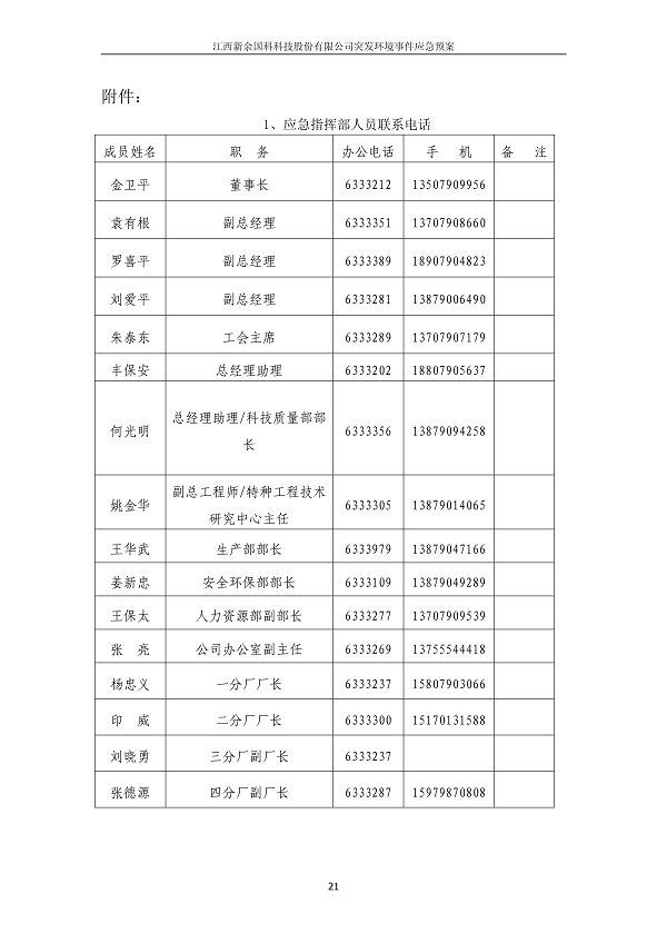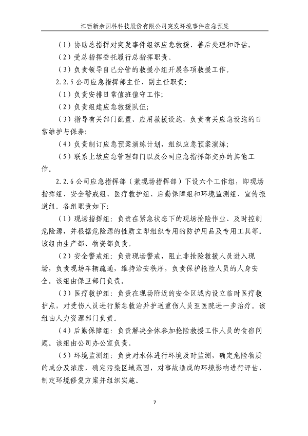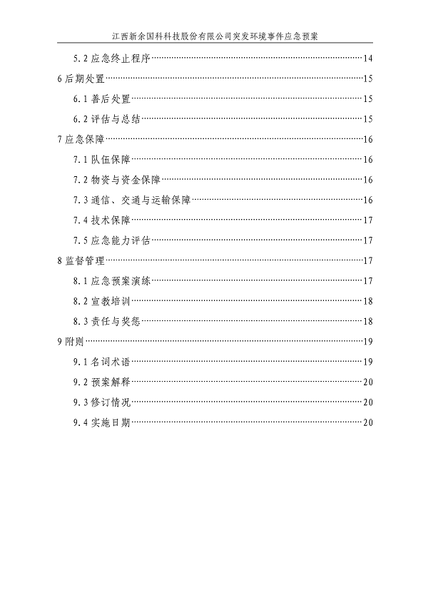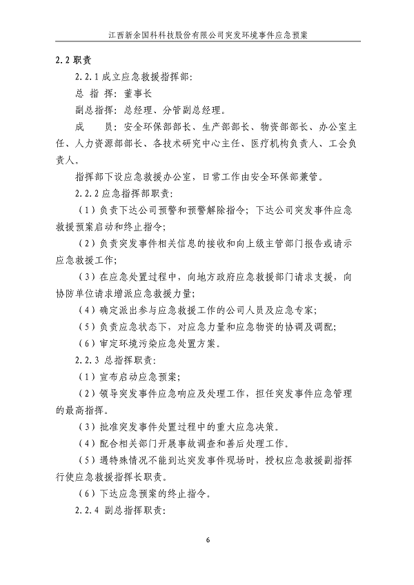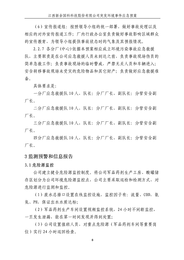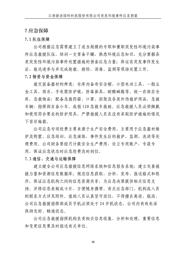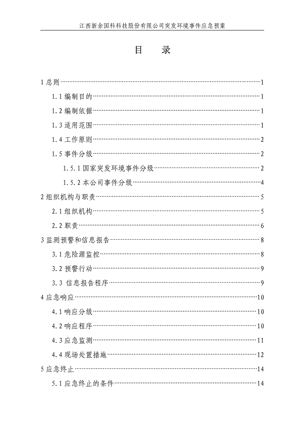 江西新余國科科技股份有限公司突發(fā)環(huán)境事件應急預案
